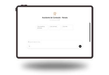 Transforma o conhecimento da Renata (contadora) em ideias de conteúdo instantâneas. Cria sequências de stories, carrosséis e sugestões de reels com base no tom de voz e nas estratégias dela. É tipo uma copywriter 24h no bolso, mas com personalidade.