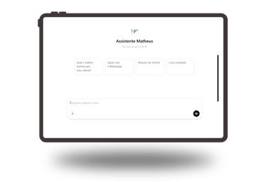 O assistente do Matheus (corretor de imóveis) é especialista para guiar a responder perguntas, apresentar imóveis e criar conteúdo para redes sociais — tudo isso sem sair do tom profissional e direto que ele usa no dia a dia.