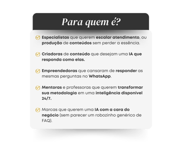 Da mentora de conteúdo à corretor de imóveis, cada IA reflete a alma do negócio.